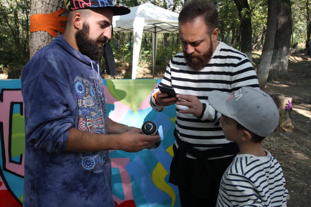 Graffiti Georgia had its own corner where we were trying to promote our Social Enterprise as well as the idea of graffiti and art. Our painter attracted a lot of People with the masterclass and then they also participated in coloring. Finally, two beautiful graffities were made together with them.