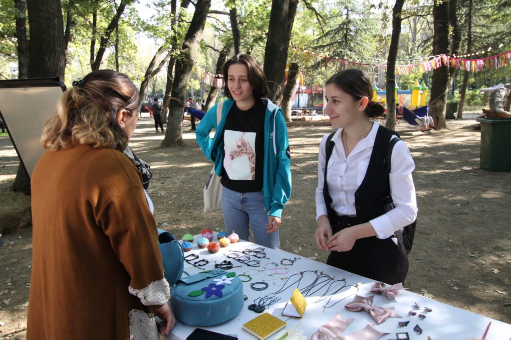 The last workshop of the day was about art and handmaking and was lead by our winners of the social entrepreneurship competition at Kaspi Municipality : “GMT Crafts”. Participants with different ages were making their own handcrafts for themselves or for their close people. Beside the workshop they also exibited and sold their products for the first time to the public.